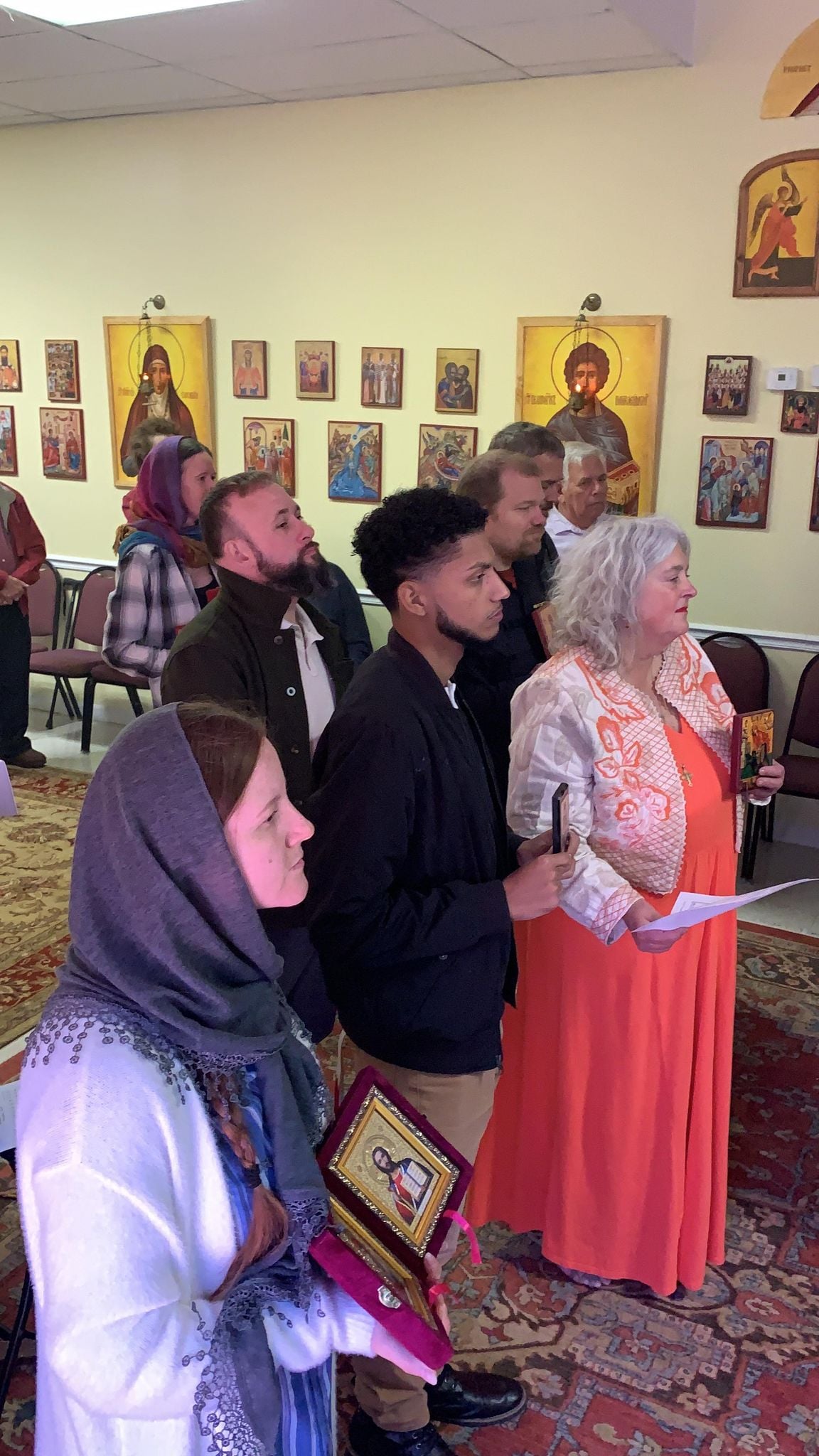 The Divine Liturgy, our main Sunday Worship service, begins at 9:30am but it is preceded by two shorter prayer services, the 3rd Hour and 6th Hour (beginning at 9:10am), which may seem like you are late if you walk in at 9:30am and observe prayers already in progress, but we are used to people coming in and out so your entrance will not cause a disturbance—come in and find an area to stand or sit and someone will welcome you and answer any immediate questions.